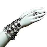 Size: the wrist size is 8", and the ring size is adjustable (can fit anyone). The bracelets have coins throughout style with unique ring design and a simple chain that wraps around wrist. They are lightweight and easy to adjust with lobster clasp closure and adjustable ring. This unique gold or silver tone belly dance slave bracelet will bring an exotic touch to your look. It can be worn as a belly dance accessory while dancing. One size adjustable Perfect for any belly dance outfit or fashion accessory.